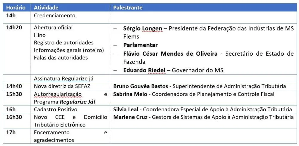 Destinado a aproximar os contribuintes e debater ações fiscais, a programação contará com palestras e apresentações de projetos. As inscrições podem ser feitas em https://www.cursos.ms.gov.br/